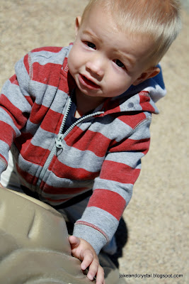 After his nap this 1st day, this guy got up, and went straight for his shoes then loaded himself in his stroller. He was ready for more.