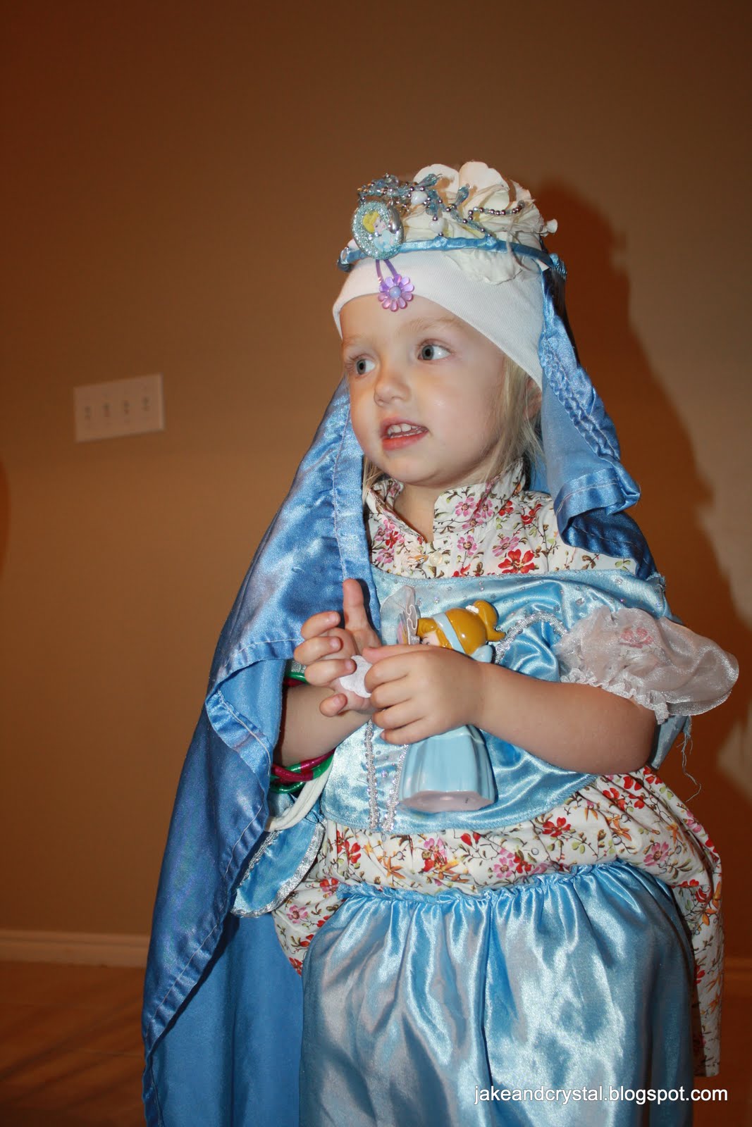 That picture above is her dressed up to get married. Notice the tiara and blue "veil"